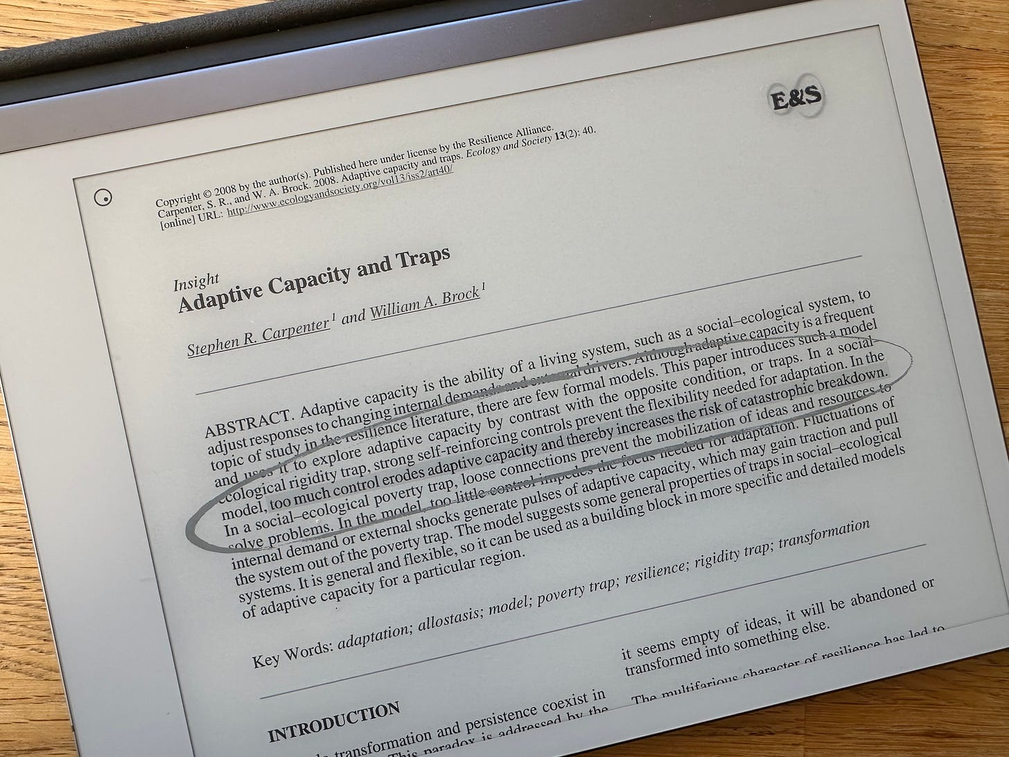“…too much control erodes adaptive capacity and thereby increases the risk of catastrophic breakdown”. Carpenter and Brock show that both too much and too little control can stifle a system’s ability to adapt. Social-ecological systems can get stuck in rigidity traps when institutions or systems become so tightly controlled, optimised, or locked into a particular way of doing things that they lose the flexibility they needs to adapt. By contrast, poverty traps can get locked in through a lack of coordination or capacity to convert ideas into action.